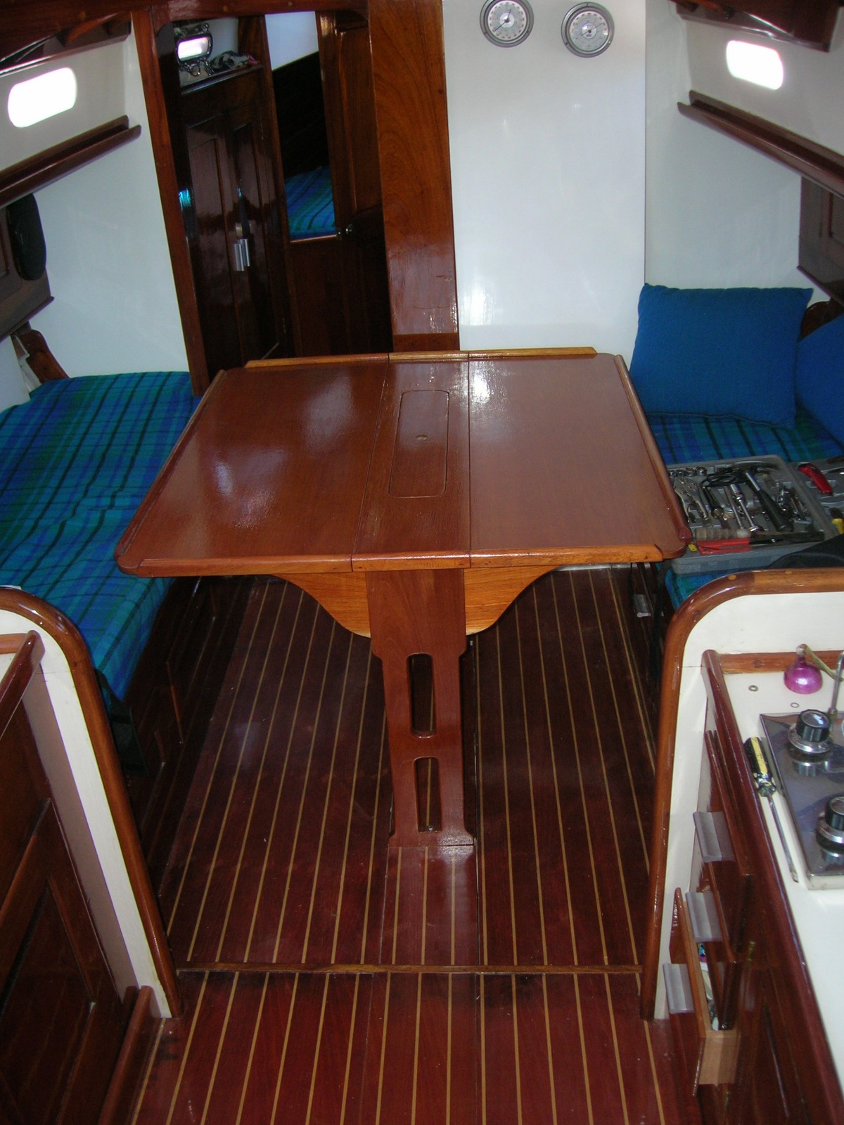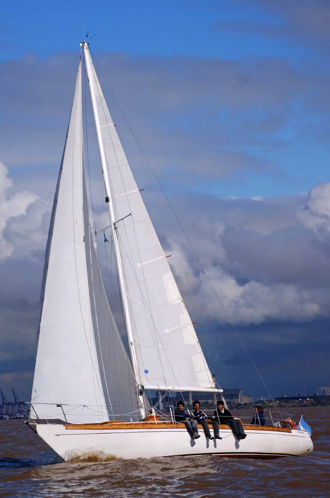| Velas | Velas: 1 mayor hood 2009 con dos manos de rizos 1 genoa 150 % 1 foque 100 % 1 Mayor de capa 1 Tormentin 1 Spinaker North Sail 0.75 5 Defensas Cleopatra triangulo de proa (nueva) |