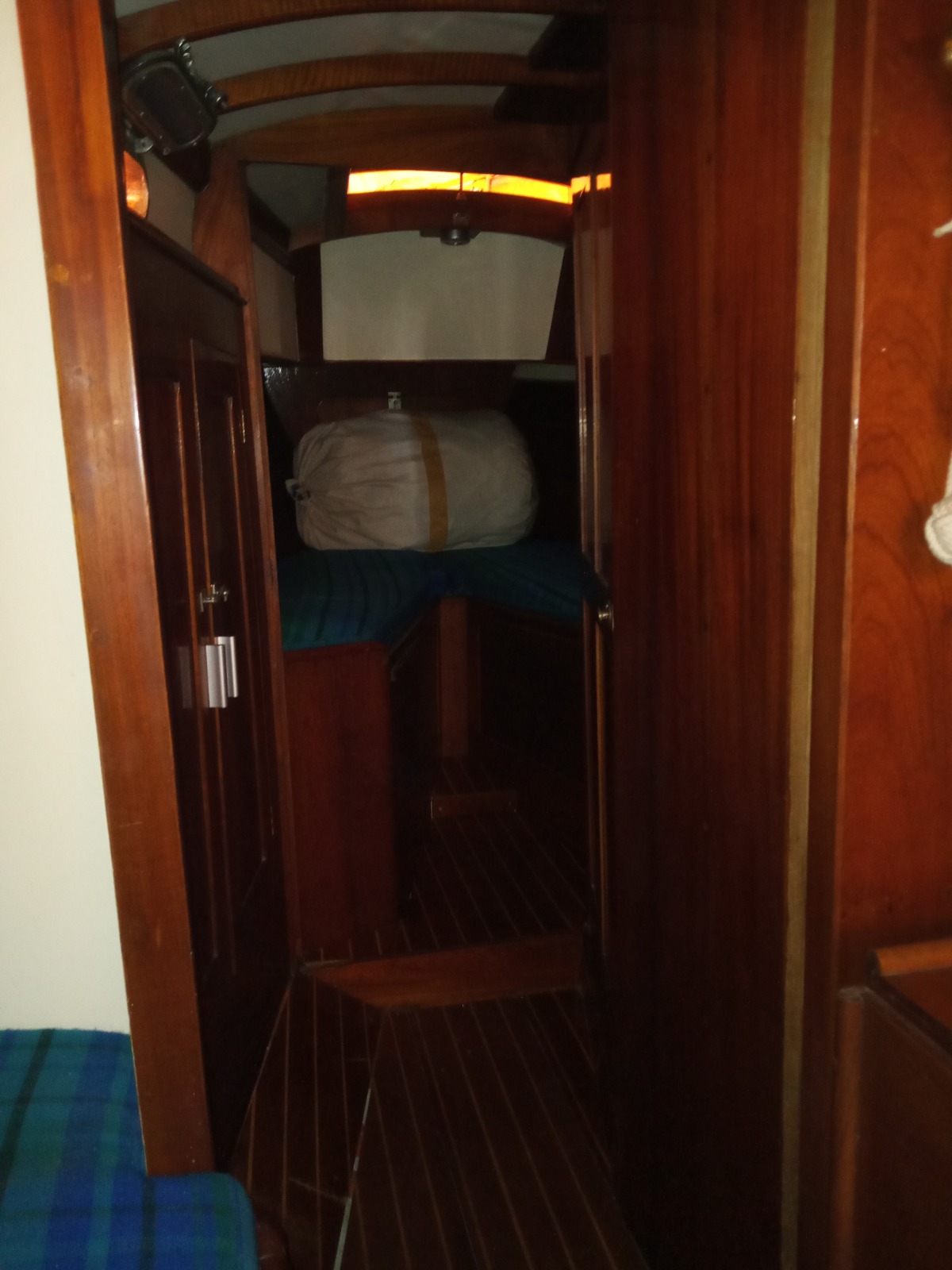 Camarote a proa con dos camas (convertible en cama doble) con tambucho