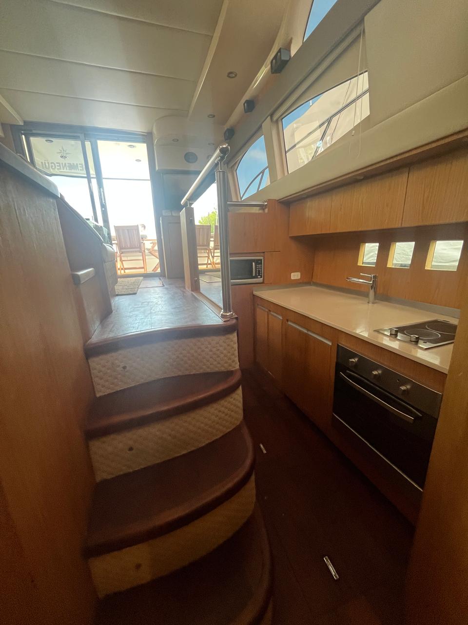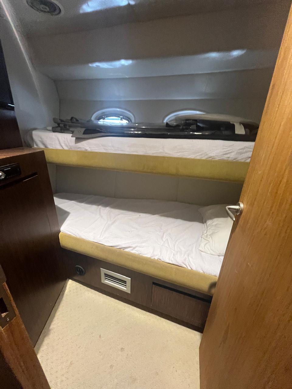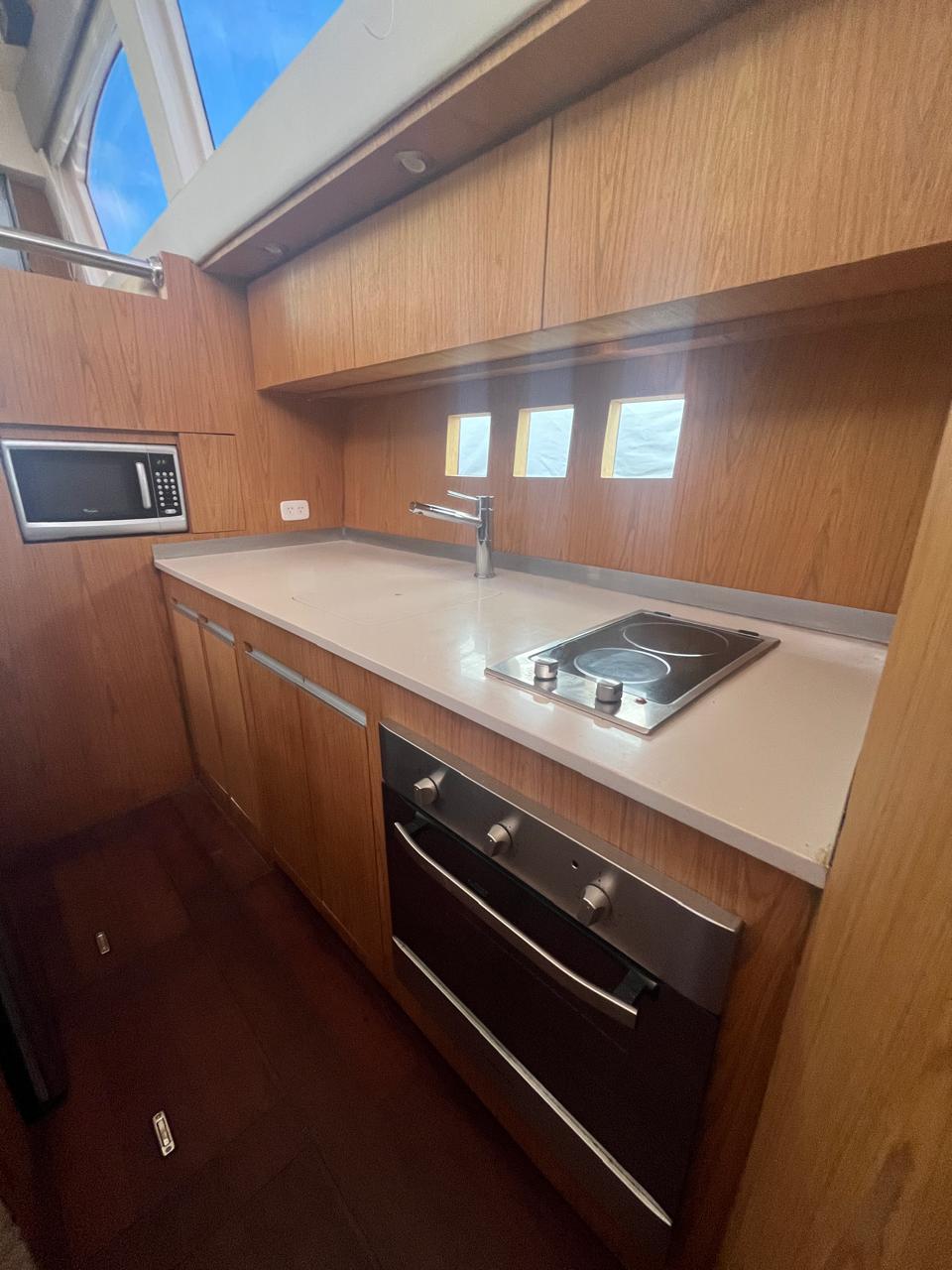 3 camarotes con placard, aire acondicionado, cortinas black out, stereo y TV. El principal de proa con cama matrimonial y baño en suite con ducha compartimentada e inodoro eléctrico con bidet (2 baños en total)- Cocina con horno marca Ariston- 2 hornallas Whirlpool-2 Heladeras bajo mesada Whirpool- Microondas marca Whirpool- Enchufes 220 V- Mesada con bacha FV con monocomando- Agua presurizada- Bocina- Antena TV- Limpiaparabrisas