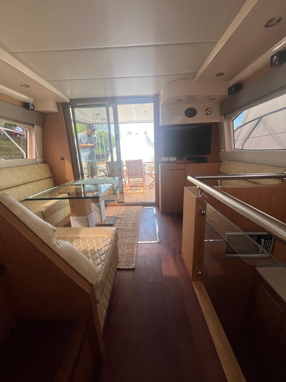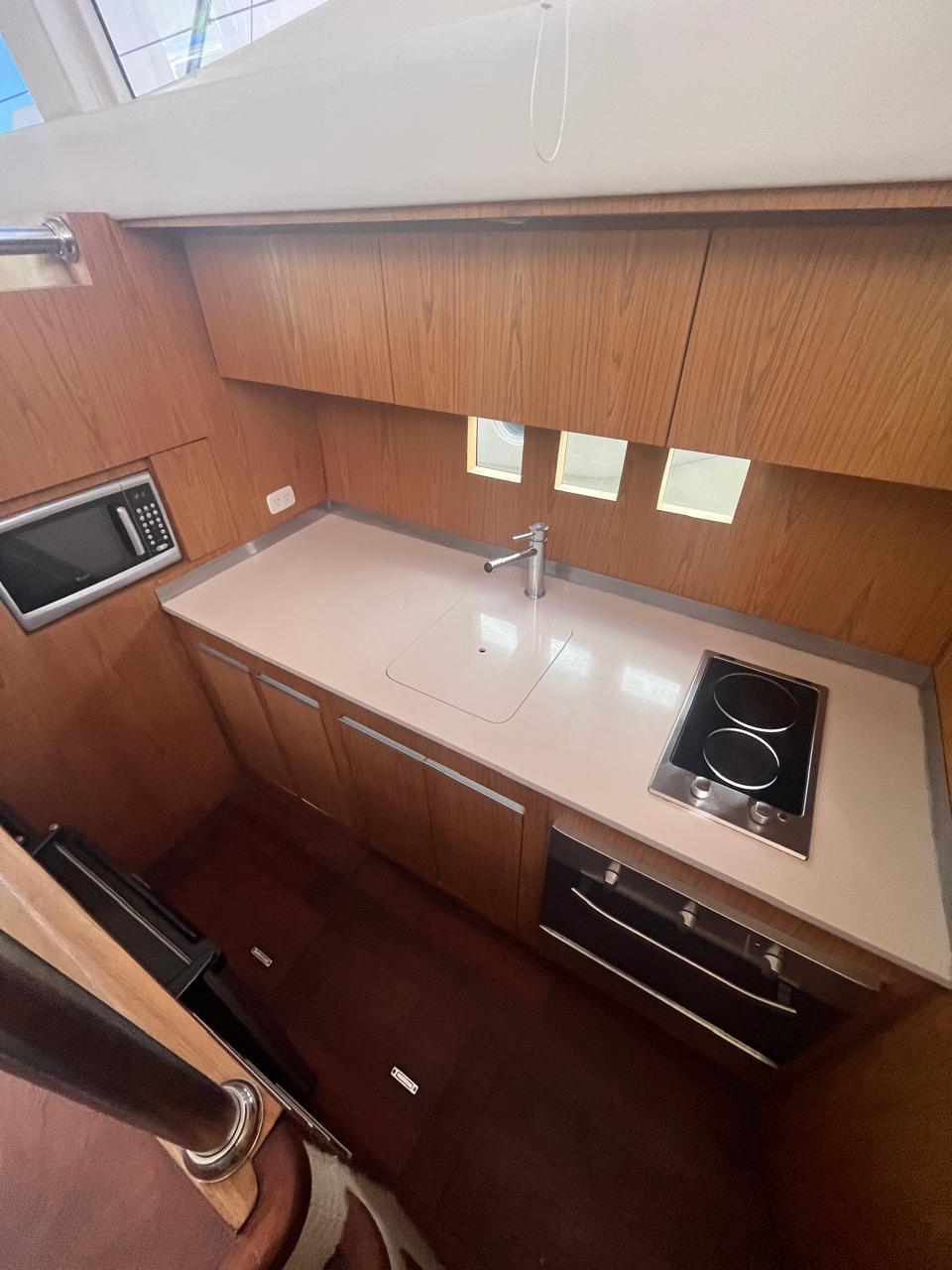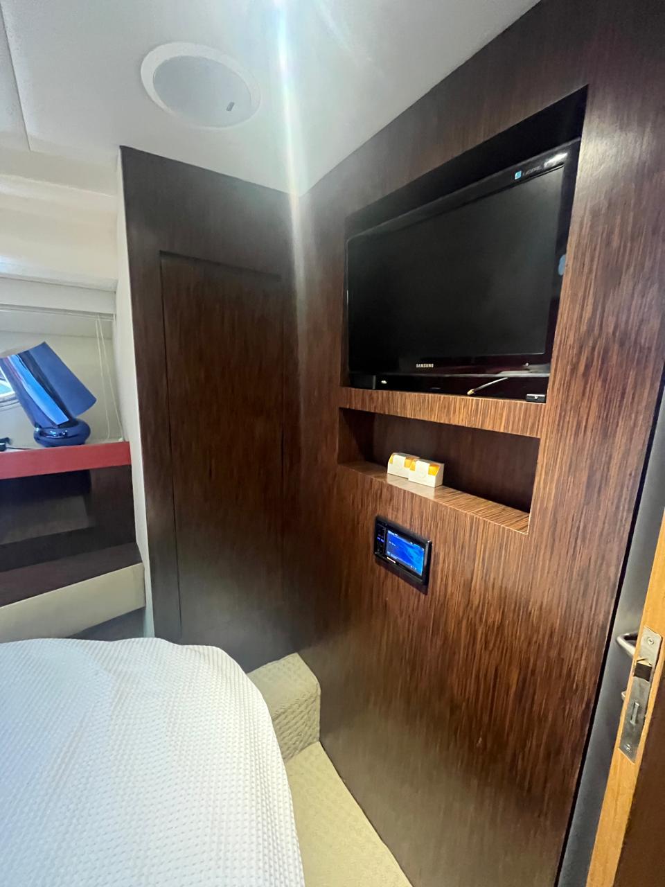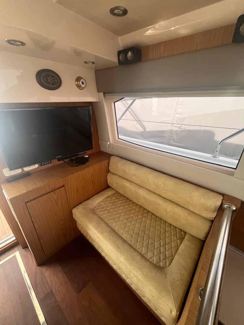 3 camarotes con placard, aire acondicionado, cortinas black out, stereo y TV. El principal de proa con cama matrimonial y baño en suite con ducha compartimentada e inodoro eléctrico con bidet (2 baños en total)- Cocina con horno marca Ariston- 2 hornallas Whirlpool-2 Heladeras bajo mesada Whirpool- Microondas marca Whirpool- Enchufes 220 V- Mesada con bacha FV con monocomando- Agua presurizada- Bocina- Antena TV- Limpiaparabrisas