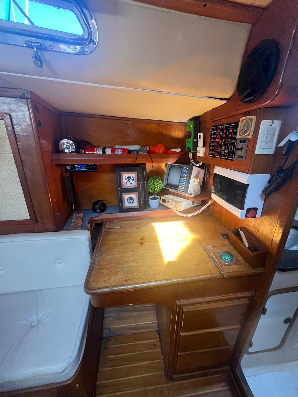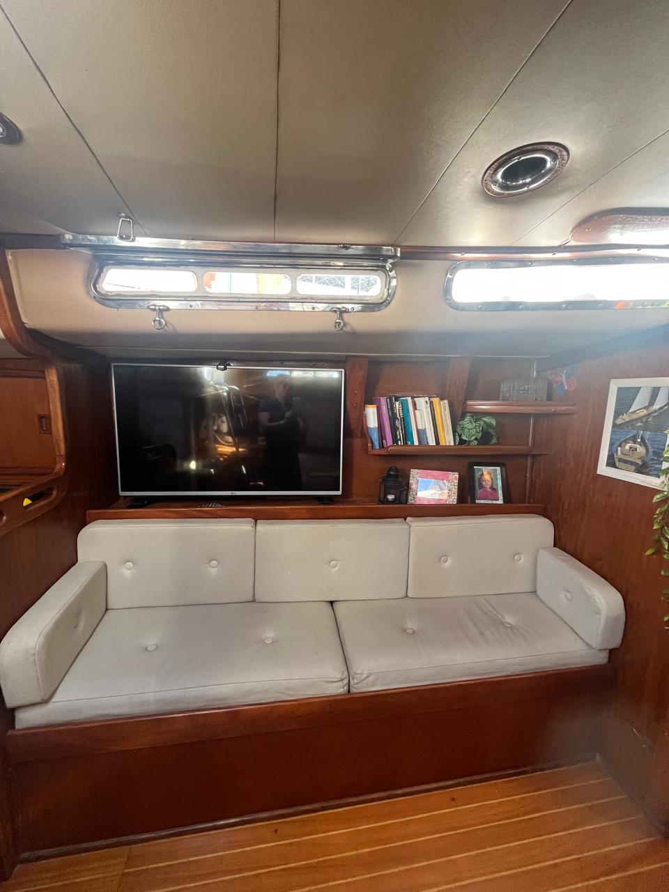 Panel solar-Malacate- Vang Rigido -Enrollador- Tangón- Chubasquera- Carpa- Colchonetas de cockpit- Dos molinetes Aldo con Self para escotas- Maniobra en el mástil – Antena TV- Mesa de cockpit- Equipo de música- TV LG- Inverter- Stereo con dvd- 220 V con térmicas y disyuntor- Regulador de voltaje- Cargador inteligente de baterías- Heladera eléctrica- Horno eléctrico- Anafe- Aire acondicionado frio calor marinizado 220 V- 2 ventiladores 12 V- Baño con inodoro electrico y duchador- Termontaque agua fría y caliente- Agua presurizada- Tanque de combustible 80 Litros