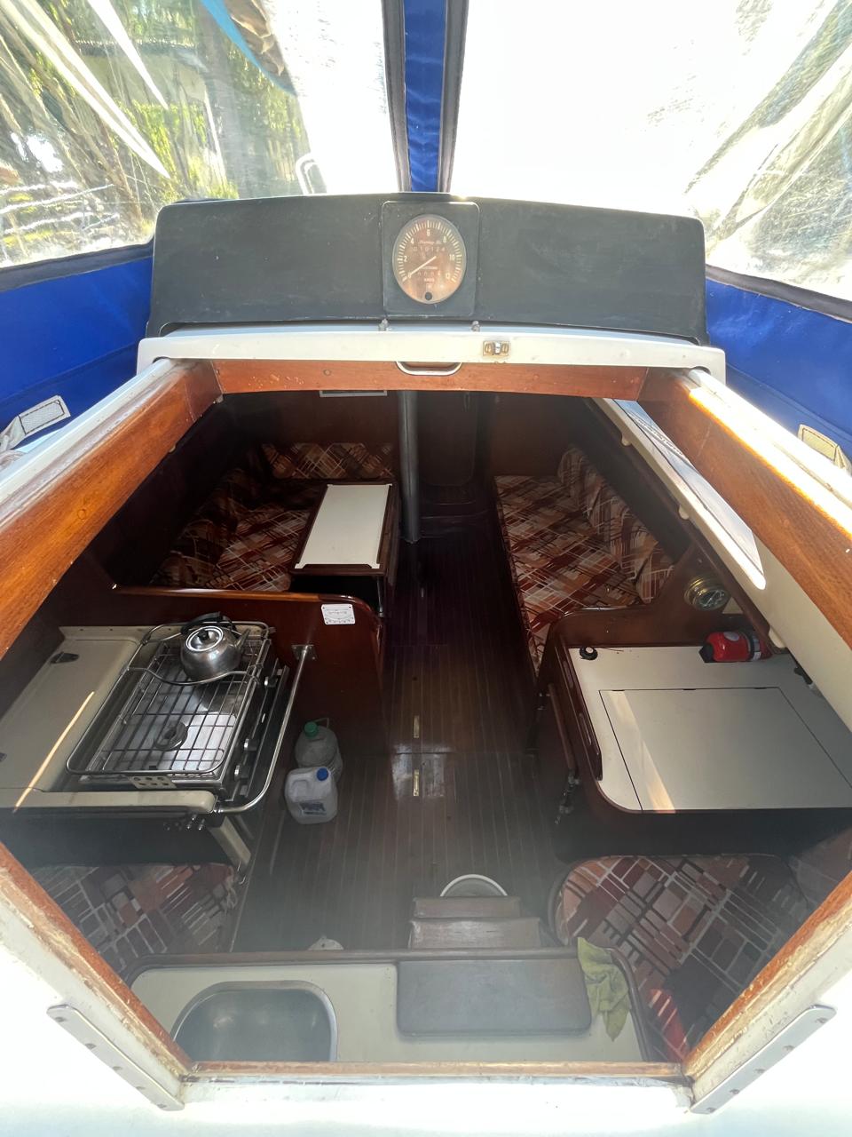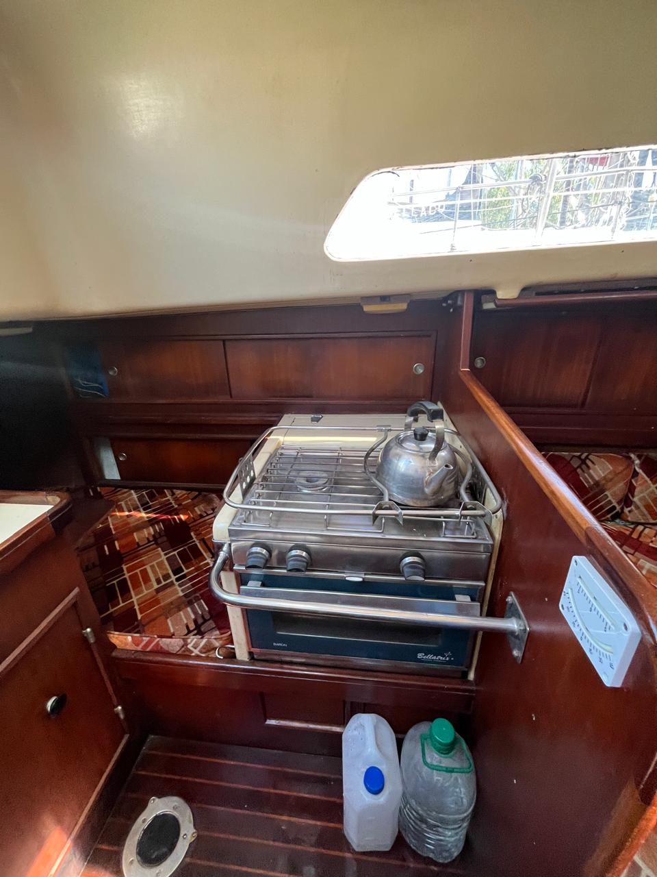 Equipamiento Malacate marca Anchorlift con ancla danforth y 30 metros de cadena- Calefactor Eberspacher (falta service)- Cocina Bellatrix- conservadora- Agua presurizada- Mesa para cockpit- Entrada 220 V- Tanque de agua 150 litros- Tangón- cuatro molinetes (dos sea winch con self-tailing)- Bimini- Chubasquera- Media carpa- Cubretambucho- Cubremayor- Mosquiteros.